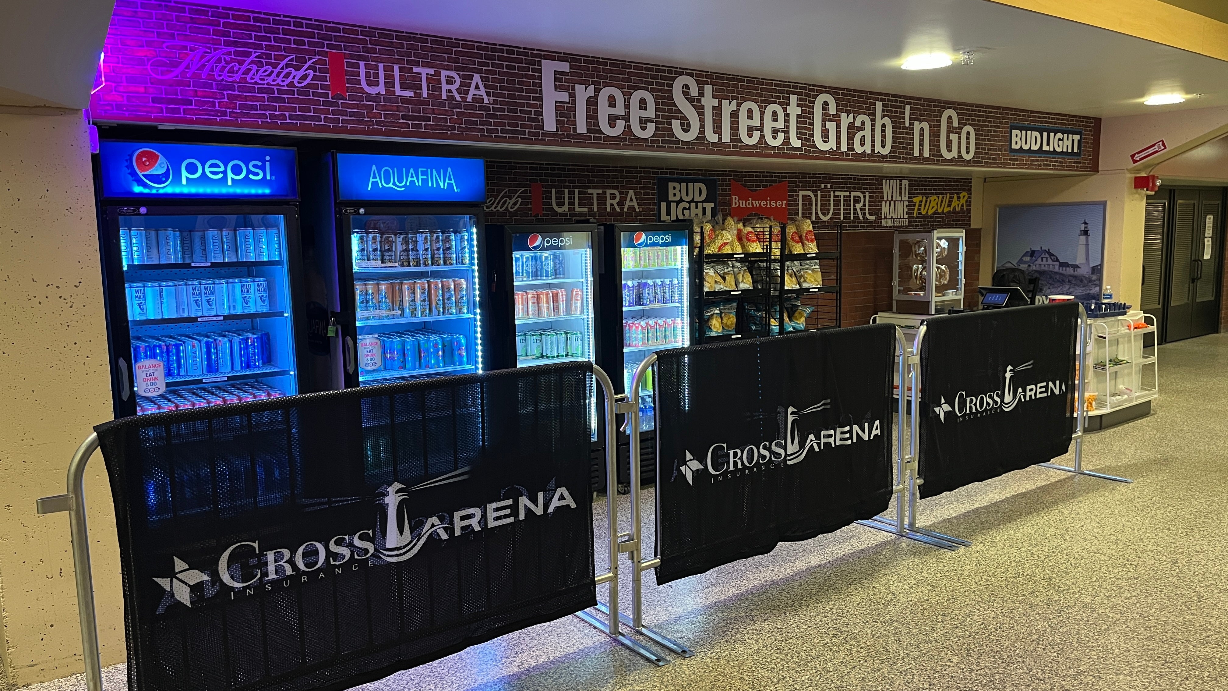 Fans gain quick access to assorted snacks, canned beer and wine right on the Free St. concourse.